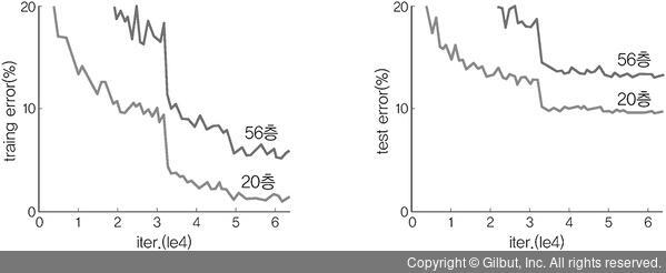 네트워크 56층이 20층보다 더 나쁜 성능을 보임